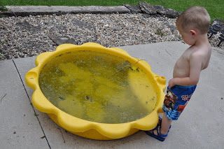 I had all my buttons in a glass vase and decided to transfer then to a plastic container to also go on the shelf, so I called in the reinforcements. I'm still finding random buttons in different locations...